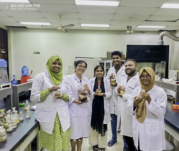 During their study period at Can Tho University, the Bangladeshi students participated in specialized academic courses and intensive practical training sessions at the modern laboratory system and practice facilities of the Faculty of Veterinary Medicine, College of Agriculture. In parallel with academic training, the students also had opportunities to attend and present scientific papers at thematic seminars in the field of Agriculture jointly organized by CTU and its partners. These activities contributed to enhancing their research capacity, critical thinking, and international academic communication skills. In addition, student exchange activities, cultural interactions, and hands-on experiences related to local life and agricultural production helped the students gain a deeper understanding of the natural, economic, and social conditions of the Mekong Delta, enriching their overall learning and experiential journey in Vietnam.