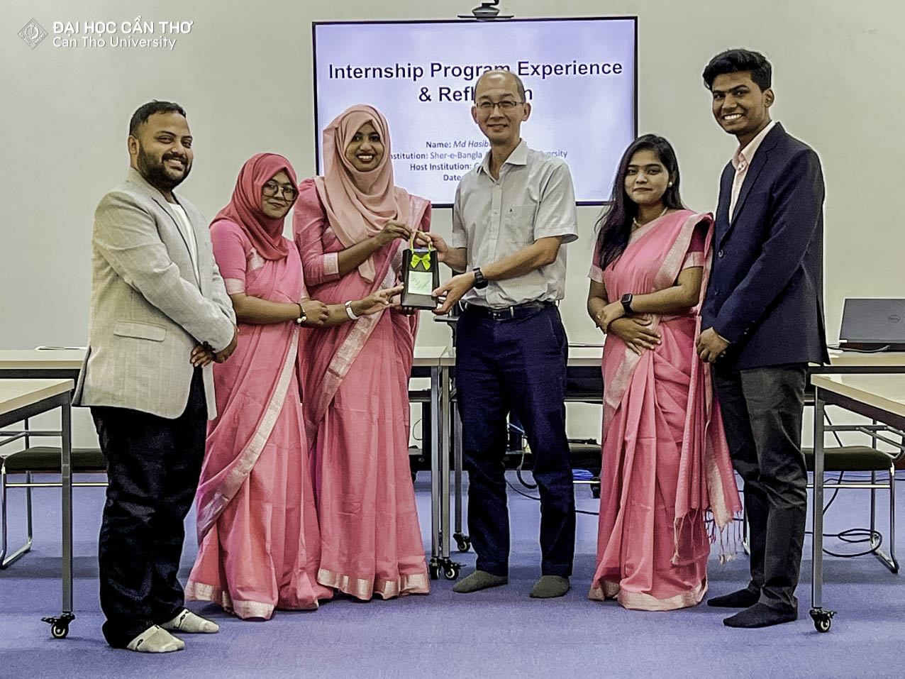 At the closing ceremony, Assoc. Prof. Dr. Chau Minh Khoi – Vice Dean of the College of Agriculture, and Assoc. Prof. Dr. Van Pham Dan Thuy – Director of the Center of Global Education, presented certificates of completion to the students. The University leadership highly appreciated the students’ serious learning attitude, proactive approach to knowledge acquisition, and strong adaptability in an international academic environment, affirming that these qualities were key factors contributing to the overall success of the credit transfer program between the two higher education institutions.