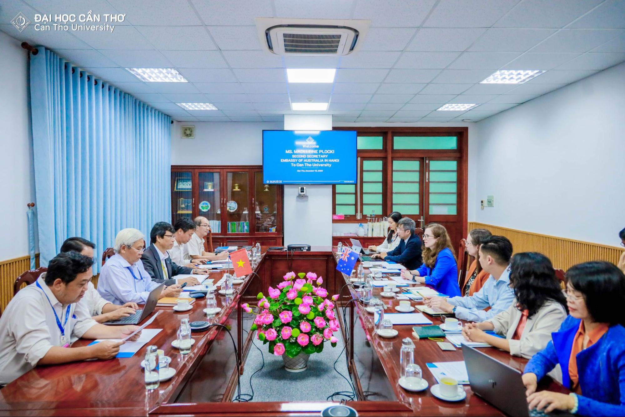 On December 15, 2025, Prof. Dr. Tran Ngoc Hai, Vice-Rector of Can Tho University, together with representatives of relevant units, welcomed Ms. Madeleine Plocki, Second Secretary (Development) of the Australian Embassy in Hanoi, and her delegation.
