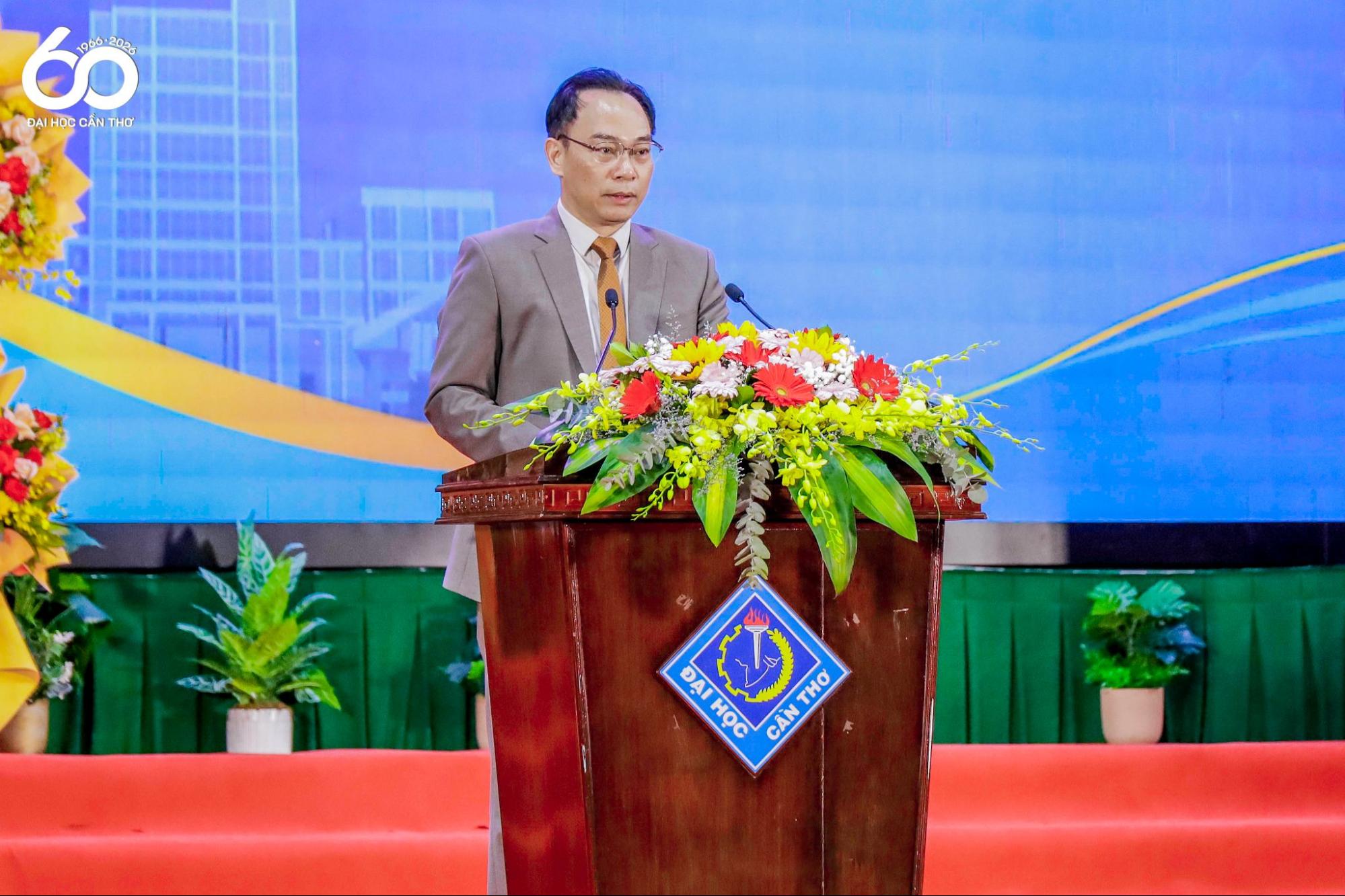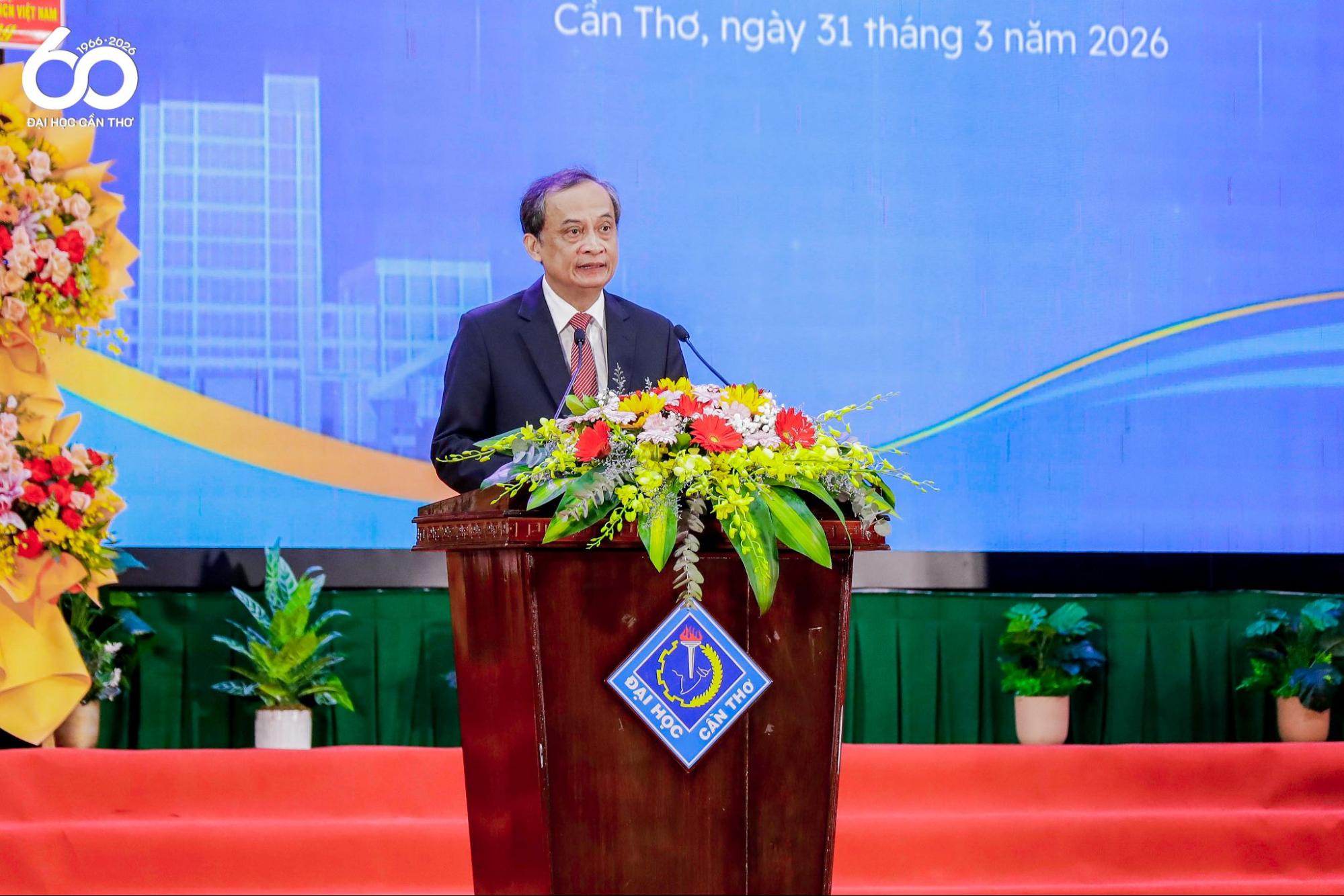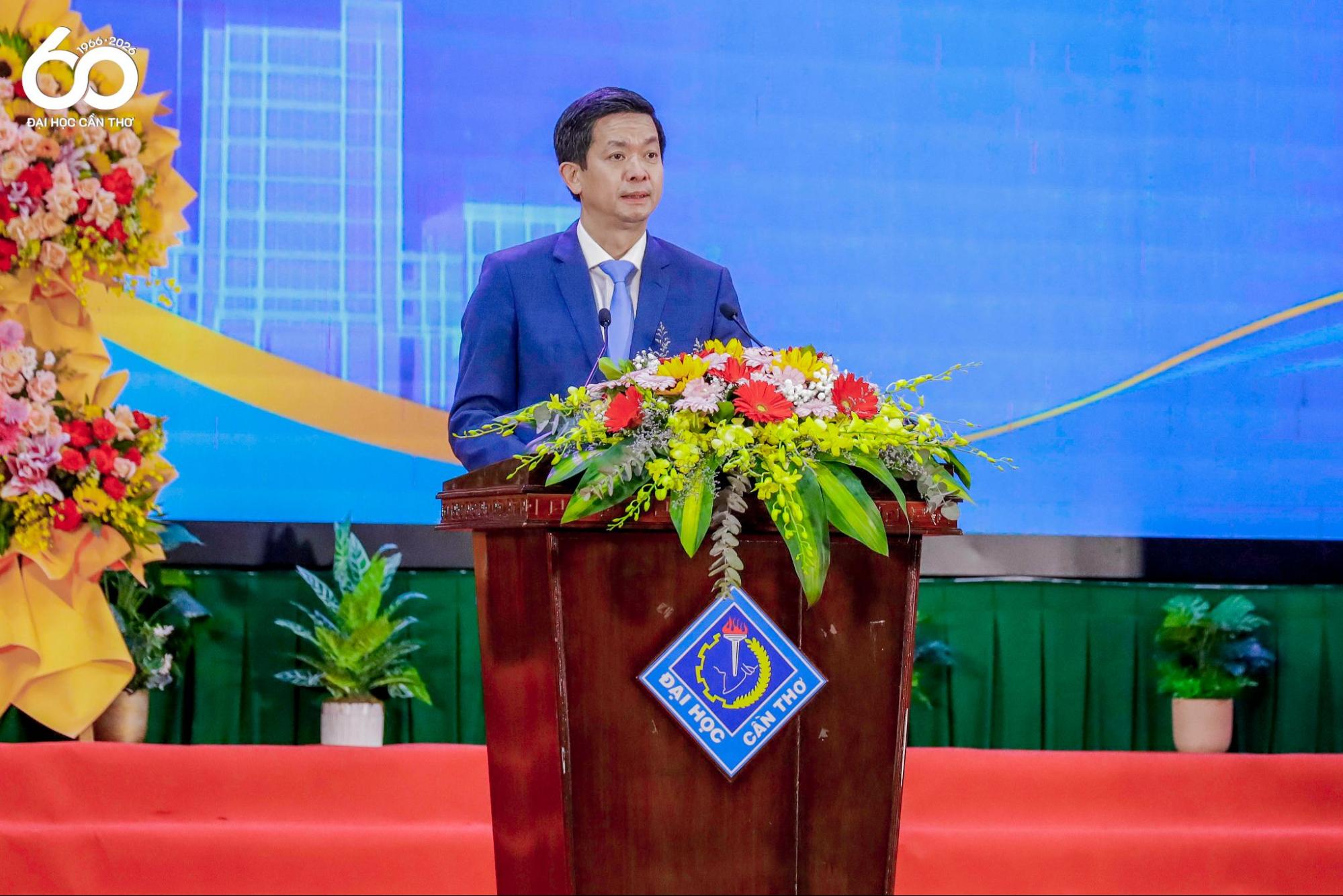 On behalf of the leadership of the Ministry of Education and Training, Assoc. Prof. Dr. Hoang Minh Son commended, recognized, and congratulated the remarkable achievements attained by generations of faculty members and students of CTU over the past six decades